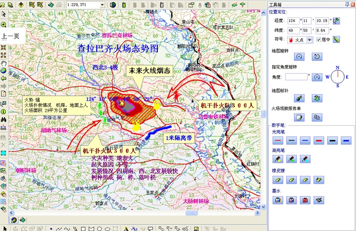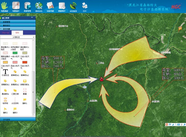 偵查標繪系統(tǒng)可采集GPS信號,實現(xiàn)了在電子地圖上進行實時領(lǐng)航。觀察員可隨時在屏幕上看到自己的位置、坐標、航跡、 航線、航向、高度、速度、偏航距離等領(lǐng)航信息,又可直觀地在電子地圖上看到所在位置周圍的地物、地貌信息。標繪系統(tǒng)方便簡單的操作步驟,更適合實戰(zhàn)應(yīng)用。同樣,救援隊伍亦可隨時知道自己的準確地理位置,并且指揮員可以利用GPRS和CDMA無線網(wǎng)絡(luò),將標繪好的火場態(tài)勢圖和文字形式的火情報告及時上傳到上級應(yīng)急指揮部門。