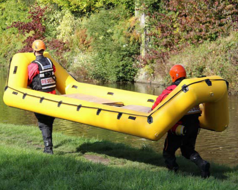 可折疊,底部堅硬耐磨,適合冰面、水面救援用。組裝操作簡單,使用方便。船體兩端為開放式設(shè)計,救援時,船身可越過被困人員頭部,救援人員無需