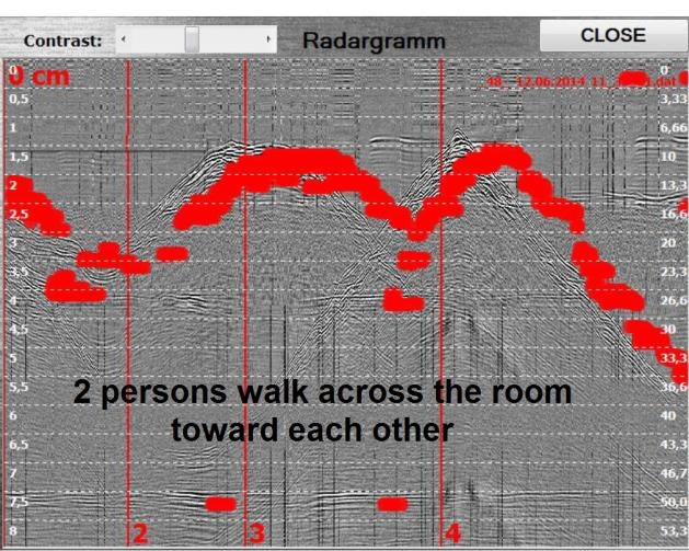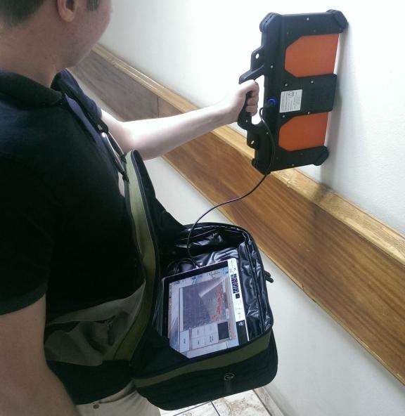 該裝置的操作原理是操作者將天線模塊導(dǎo)向墻壁。 然后即可在計算機屏幕上觀察當(dāng)物體在墻后移動時反射信號的雷達圖的變化。
