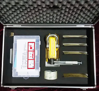 表面采用防爆鋁青銅材質,內部利用超強永磁體對鋼鐵容器的吸附力,通過操縱手柄控制工作面上的磁通量,吸住泄漏的有磁金屬表面,達到工具和泄漏本體之間的壓合和釋放。仿形壓片,是在墊在磁壓堵漏器本體與泄漏口之間的薄板,用它可彌補二者之間的空隙,減小磁阻,改善堵漏膠的分布狀態(tài)??焖俣侣┠z調均勻后堆向泄漏口,同時扳動通磁手柄,可阻止內壓液體流出,讓膠體有時間凝固,數(shù)分鐘內膠固化后,堵漏即告完成。堵漏膠和密封劑能承受水、油、液化氣、30%硫酸、30%鹽酸、氫氧化鈉、飽和氯化鈉溶液的侵蝕。