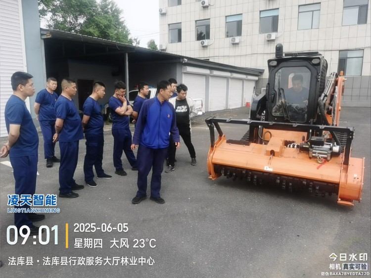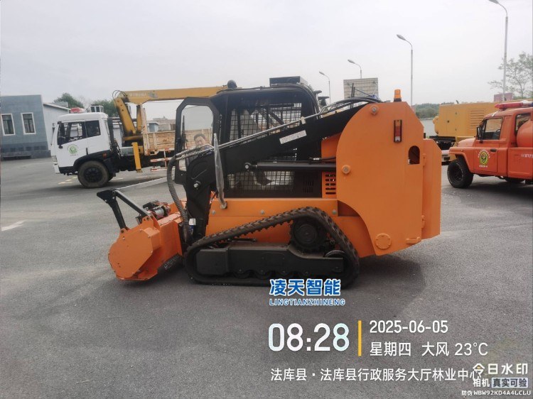 森林隔離帶開辟車是由隔離帶開辟機模塊、大型鈍刀式切削模塊、重型林木抓斗、鏟斗、快換機構(gòu)、履帶式行走機構(gòu)、臂架舉升裝置、駕駛室、電氣液壓系統(tǒng)和無線遙控器組成。設備應采用雙三角形履帶式行走機構(gòu),具備建造防火隔離帶的能力,可粉碎樹 木、灌木、草等各種可燃性植物,能在茂密的樹林、灌木林、草原中迅速開辟防火隔離帶??煞鬯榈臉淠局睆?/span>≥ 250mm,連續(xù)粉碎時可粉碎的樹木直徑≥80mm,可粉碎的樹木、灌木和草的高度沒有限制。在山地林區(qū)開辟防火隔離帶、維護防火通道、開辟臨時救援通道、建立安全島、輔助清理火場、開設生土隔離帶等應急救援任務。