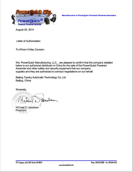 2014年8月26日 ,北京凌天成為 美國(guó)Power quick 公司 自動(dòng)升降機(jī) 一級(jí)代理