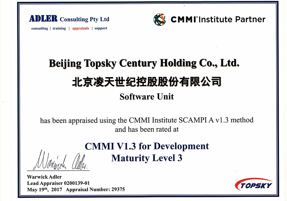 CMMI認(rèn)證的取得是北京凌天在高科技裝備發(fā)展的一次重要的里程碑,標(biāo)志著凌天在軟件設(shè)計(jì)、開(kāi)發(fā)、項(xiàng)目管理及為用戶(hù)提供高質(zhì)量產(chǎn)品方面達(dá)到了國(guó)際化水平。
