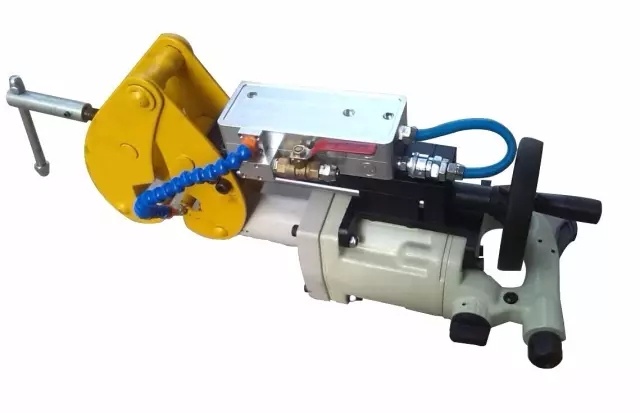 產(chǎn)品介紹: ZQG-8/0.4 氣動鋼軌鉆適用于15kg/m-30Kg/m各種鋼軌軌型鉆孔作業(yè)。整體結(jié)構(gòu)緊湊,質(zhì)量輕、操作靈活、夾具裝置有自鎖功能,定位準(zhǔn)確、鉆孔精度高。采用空心鉆頭、也可裝卡麻花鉆頭,鉆孔有自動給水功能,造型美觀、礦山輕軌鉆孔理想設(shè)備。 鋼軌鉆由主機、雙重斷水保護裝置、進口硬質(zhì)合金鋼軌鉆頭、凈化器、張緊裝置等組成,液壓膠管總成將氣源和主機連接起來,經(jīng)過凈化的氣源提供的氣壓驅(qū)動鋼軌鉆投高速鉆進,進行切割。灑水冷卻噴頭和雙重斷水保護裝置起到冷卻和降塵的作用,保護機器正常運轉(zhuǎn)。