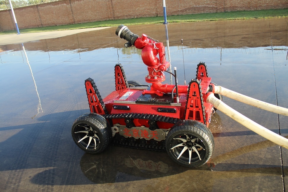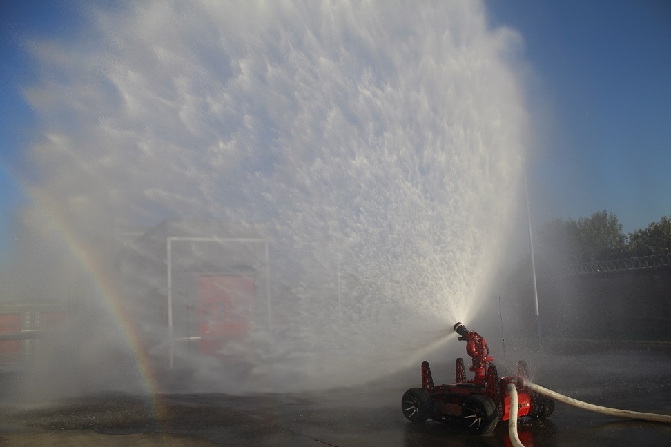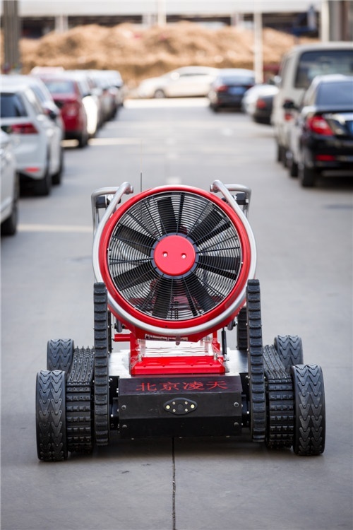 消防排煙偵察機(jī)器人采用履帶+擺臂+輪式的底盤設(shè)計(jì),裝配大功率水驅(qū)動排煙機(jī)。水霧噴射裝置,形成霧化效果。消防排煙機(jī)器人在救援當(dāng)中可深入災(zāi)害現(xiàn)場執(zhí)行排煙降塵、冷卻、送風(fēng)、降低熱輻射等多種作業(yè)。