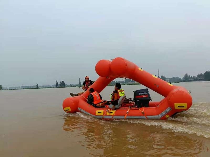 ▲凌天智能裝備自主研發(fā)的自扶正激流救生艇參與河南新鄉(xiāng)洪水救援。