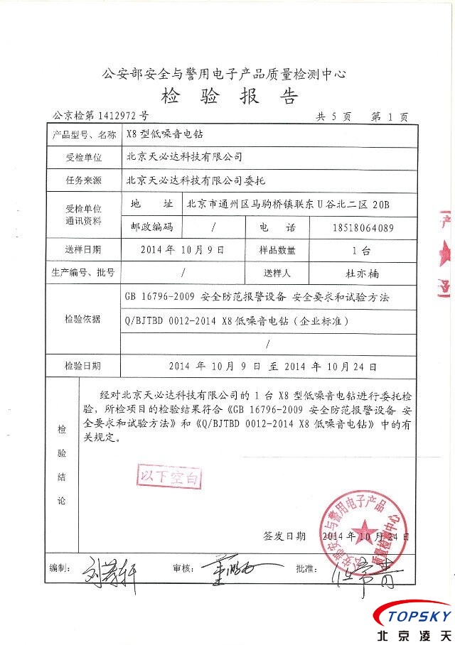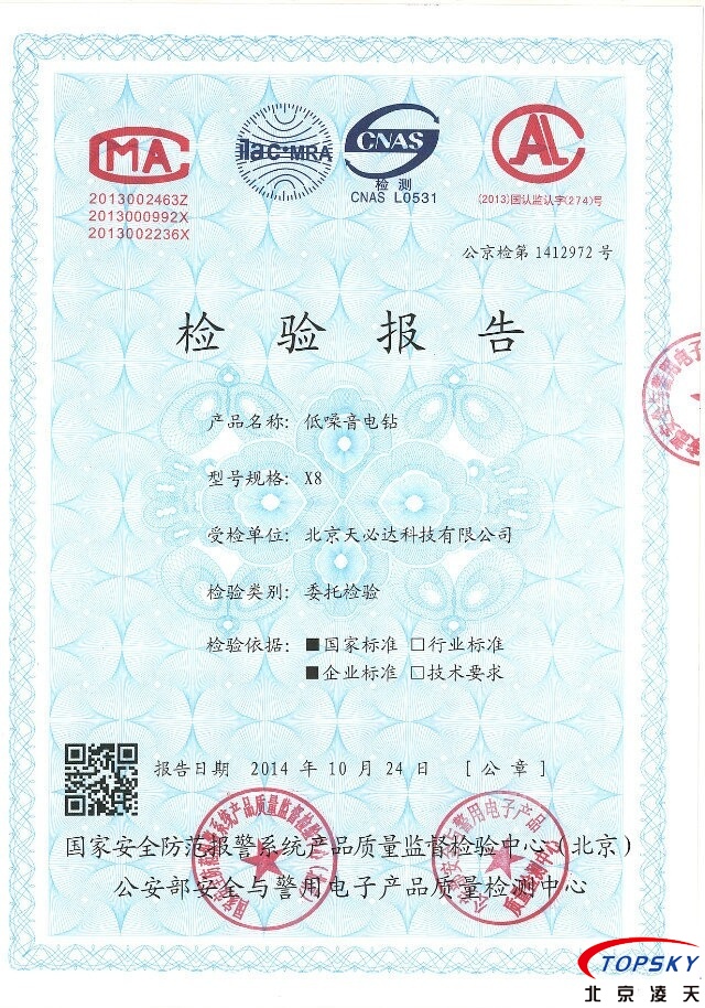X8靜音電鉆 通過公安部權(quán)威機構(gòu)檢測
