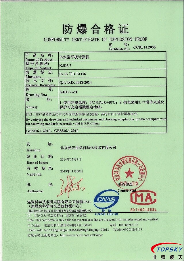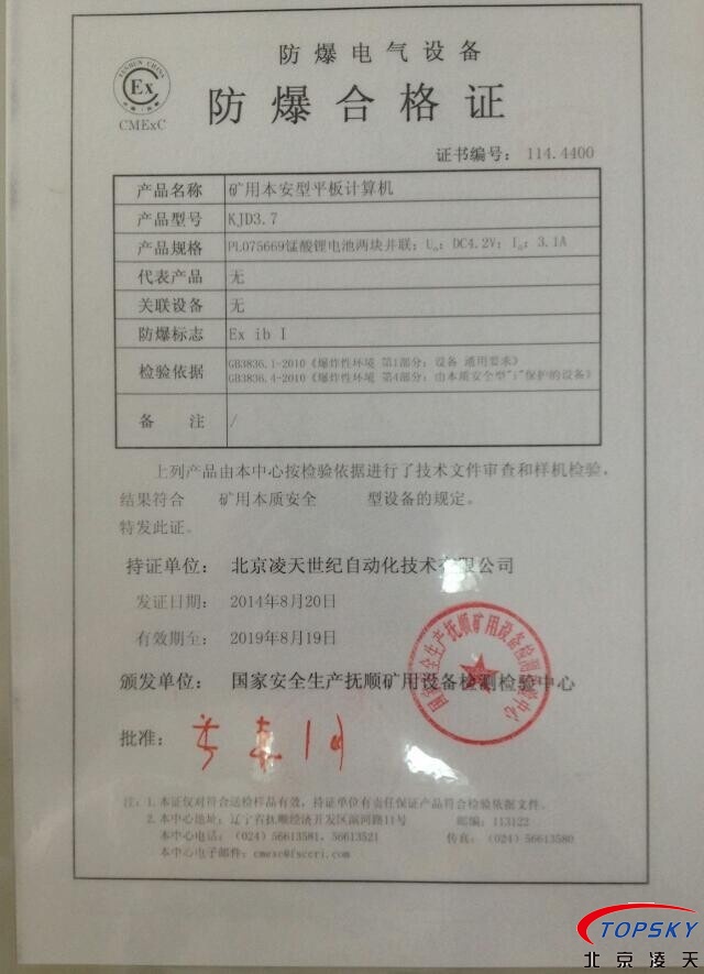 10)提供煤安認(rèn)證原件、防爆認(rèn)證原件