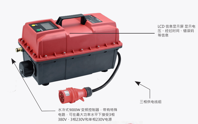 為高頻破拆工具組提供變頻電源,輸出功率可達9000W。內(nèi)建漏電斷路器的變頻控制器提供充分的電子保護,可用于高低電壓/溫控保護以及對工具產(chǎn)生高電流的電流保護。