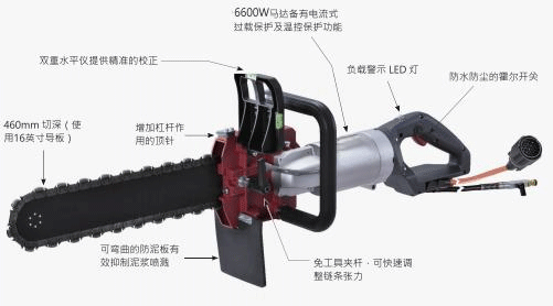配備了6600W高頻永磁同步馬達的水泥鏈鋸,非常適用于大深度切削和無過度切削的精確切角!