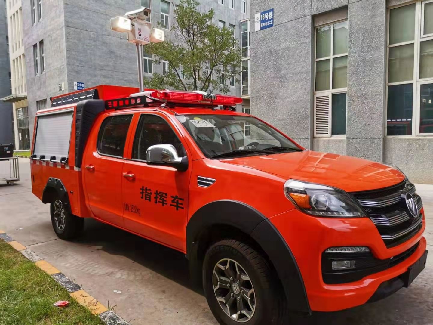 專門為特種機器人量身定做的一款機器人運輸車,由皮卡車改裝,區(qū)別于傳統(tǒng)意義上大型運輸車,體積更小,動力更足。車廂設(shè)計有升降照明系統(tǒng),解決了救援現(xiàn)場能見度低的問題,1.2-1.8米升降高度,可滿足不同照明需求。車體頂部裝有4G圖像傳輸系統(tǒng),可將現(xiàn)場情況實時傳輸?shù)街笓]部,有利于指揮現(xiàn)場調(diào)度。配有一體化機器人裝運梯,最大承壓≥600Kg。后箱四周配有一圈小型照明系統(tǒng),可用于晚間或光線昏暗等環(huán)境。后箱設(shè)計有獨立儲物架,可放置機器人配套設(shè)備。兩側(cè)卷閘窗設(shè)計方便拿用。