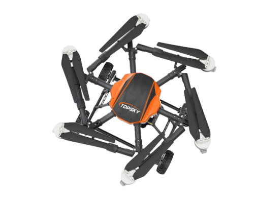 本陸空兩棲無人機平臺為北京凌天智能裝備集團研發(fā)的集多旋翼無人機與陸地行駛系統(tǒng)于一體的陸空兩棲無人機平臺(多用途偵檢無人機),采用六旋翼機身設計,配備可快拆的陸地行駛系統(tǒng),能夠空中飛行與地面行駛兩種模式間自主或受控切換,既能空中飛行,又可陸地行駛。載重大,續(xù)航長,并且機體折疊標準化負載接口、集成航電系統(tǒng)、核心傳感器雙冗余備份系統(tǒng)。搭載長距離實時通訊鏈路,實時傳輸現(xiàn)場環(huán)境數(shù)據(jù)及無人機飛行數(shù)據(jù)。配備智能控制系統(tǒng),可滿足多種場景和多種方式的作業(yè)需求。本陸空兩棲無人機平臺可適應復雜多變的環(huán)境與任務需求,極大地擴展了傳統(tǒng)無人機的作業(yè)邊界??纱钶d多種載荷,如:四光吊艙、氣體檢測儀、喊話器,滿足環(huán)境偵查、應急教援、安全疏導、氣體檢測等不同場景的行業(yè)應用。
