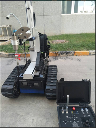 主要是用來(lái)處理戰(zhàn)術(shù)破拆式機(jī)器人,也可用于遠(yuǎn)程遙控偵察人難以達(dá)到的地形的一種機(jī)器人。機(jī)器人配備十字滑臺(tái),靈活調(diào)動(dòng)工具的工作位置,可加載手持式切割機(jī),還可以加載獨(dú)立電動(dòng)液壓工具其包括:微型開門器、微型擴(kuò)張器、微型剪切器之間可以靈活更換,底盤采用履帶結(jié)構(gòu),能適應(yīng)各種地形快速作戰(zhàn)部署。 |