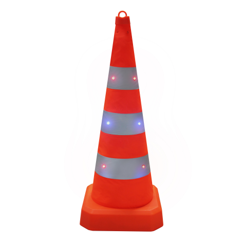 該發(fā)光路錐為LED發(fā)光伸縮路錐,高度通常為90cm,加頂燈高95cm,收納尺寸340340110mm,單重3kg。它采用300D防水防刮花牛津布材質(zhì),底座加大加寬,錐體重量集中在底部,穩(wěn)定性好,不易被風吹倒。具備常亮、快閃、慢閃三種發(fā)光模式,可在不同場景下按需切換,夜間警示效果好。