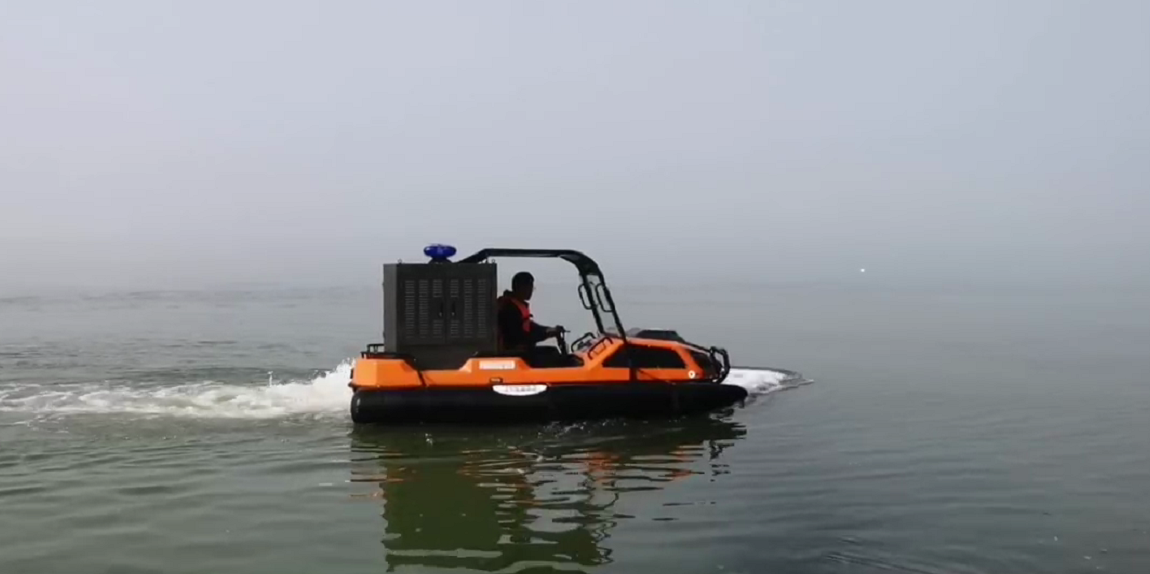 在復(fù)雜惡劣的地形條件和自然環(huán)境下,水陸兩棲全地形車可以讓搜救隊員和攜帶的救援裝備快速到達(dá)救援現(xiàn)場,減少徒步帶來提供消耗,完成最后一公里最好五分鐘緊急救援任務(wù)。水陸兩棲全地形車可配備點到絞盤、救援擔(dān)架組件、探照燈、警示燈、警報器、脫鉤、破拆工具等裝備, 給救援團(tuán)隊提供救援保障,更安全的解救傷員和疏散群眾。