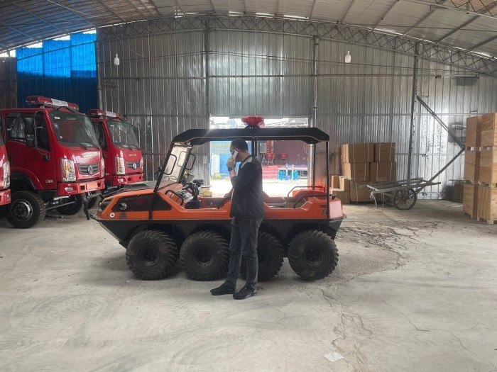 當(dāng)火災(zāi)出現(xiàn)時,在復(fù)雜地形和環(huán)境下,沒有時間等待重型救援裝備能順利及時到達(dá)現(xiàn)場。水陸兩棲全地形車可立刻準(zhǔn)備好,部署消防人員,使用車上搭載的噴霧和泡沫設(shè)備在現(xiàn)場抑制火源。配備同樣的裝備來保護(hù)火災(zāi)易發(fā)地區(qū),風(fēng)險防范于未然。