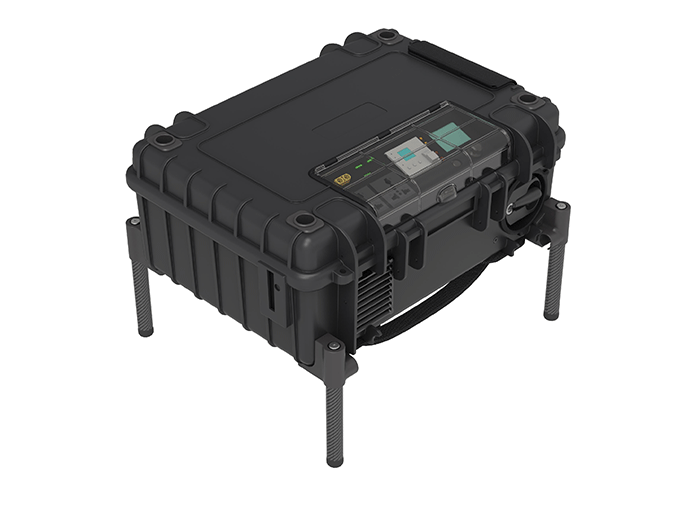 供電系統(tǒng)為背負式系統(tǒng)。系留箱提供腳架折疊功能,在地面展開時可以避免與惡劣地面環(huán)境接觸,從而保護系留箱;箱體可背負式設計,箱體材料采用環(huán)保材質,與人體背部貼合處符合人體工程學設計,舒適耐用,適合單兵長距離背負。