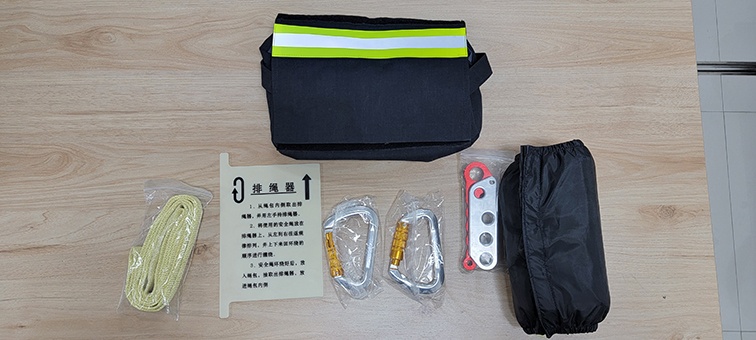 多功能繩包具有阻燃和防水的特點,還可拆卸充當墻角護墊和繩索護套使用,可提高繩索使用的安全性,安全繩具有阻燃、耐高溫、強度高、重量輕等特點并帶有清晰的反光標識,配合輕質(zhì)高強度鋁合金的安全鉤、下降器使用,使逃生人員、消防員可以快速完成逃生自救。