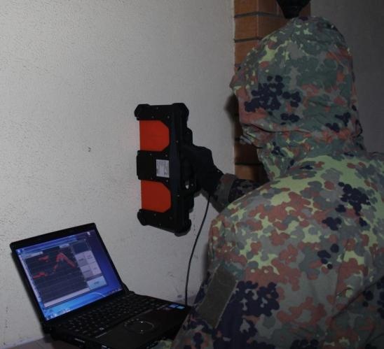 該裝置的操作原理是操作者將天線模塊導(dǎo)向墻壁。 然后即可在計算機屏幕上觀察當(dāng)物體在墻后移動時反射信號的雷達圖的變化。