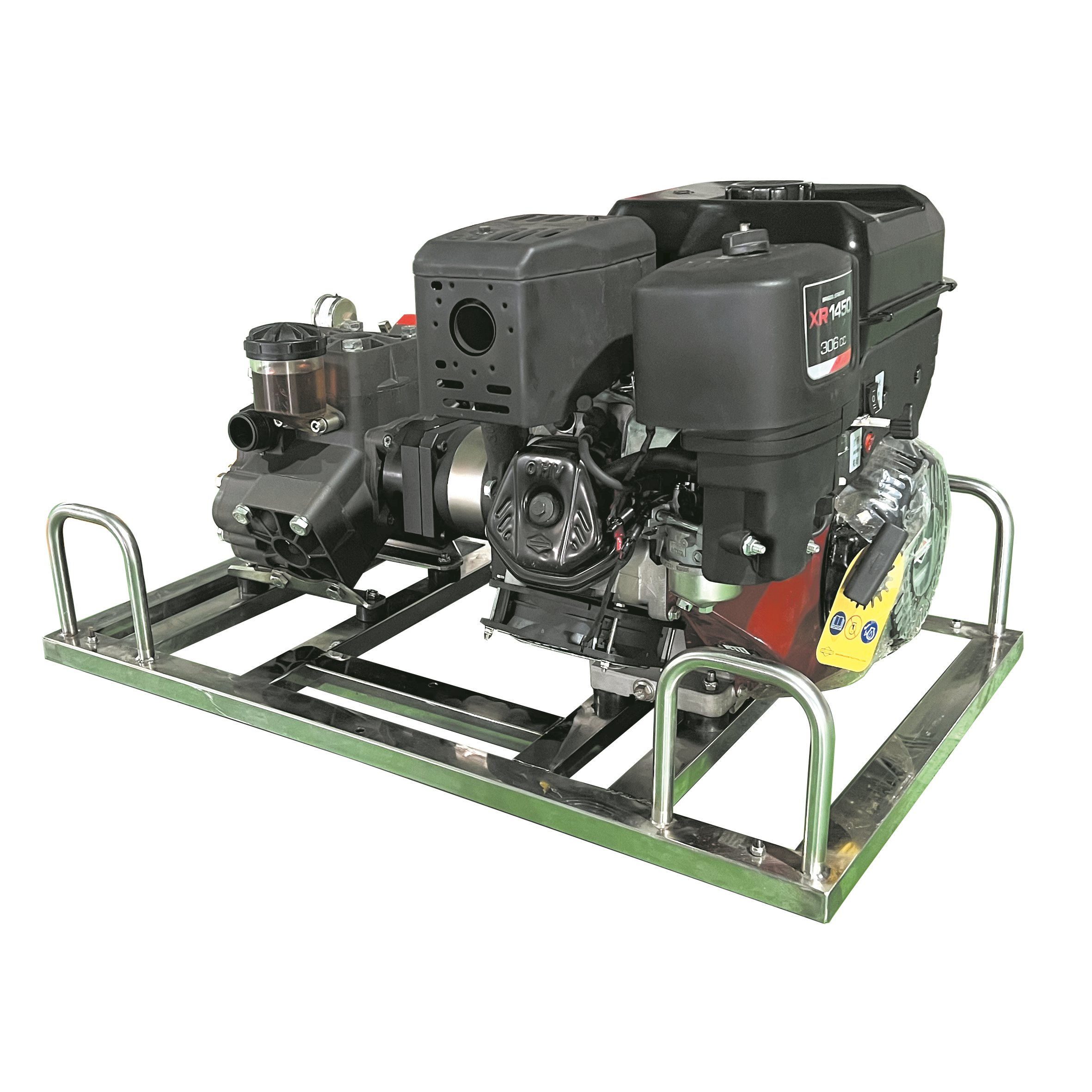 不銹鋼架,便于攜行。泵軸水平布置,減少震動(dòng)。