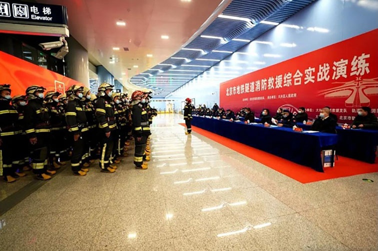 為全力做好2022年春運(yùn)服務(wù)保障工作,防范化解重大安全風(fēng)險,聚焦“全災(zāi)種、大應(yīng)急”救援需要和地鐵隧道火災(zāi)滅火救援處置能力,1月21日凌晨,北京市全要素地鐵隧道火災(zāi)滅火救援綜合實(shí)戰(zhàn)演練在北京地鐵大興機(jī)場線大興新城地鐵站開展。整個演練調(diào)集了10個消防支隊、52部消防車、248名消防救援人員參與。北京凌天2臺消防內(nèi)攻偵察機(jī)器人參與到此次演練中。