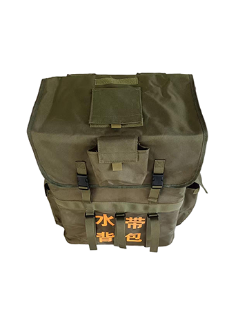用于背負(fù)運(yùn)輸及鋪設(shè)消防水帶,鋪設(shè)水帶時,水帶出口端要求相對固定或單兵手持,水帶背包背負(fù)人員向前走動時,水帶自然滑出,實現(xiàn)水帶鋪設(shè)。