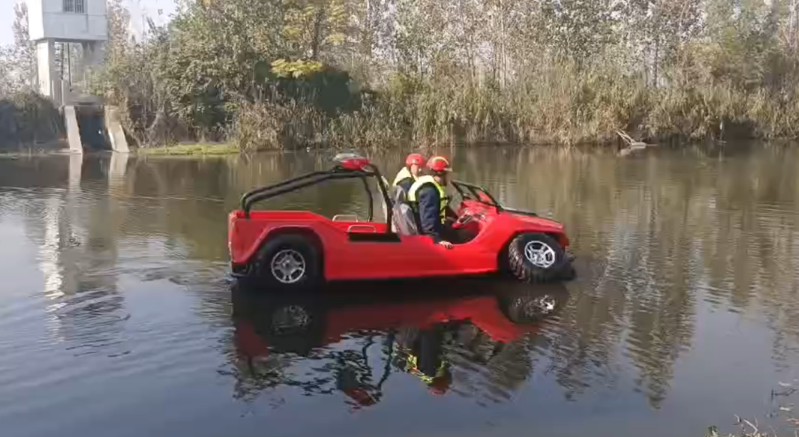 在復(fù)雜惡劣的地形條件和自然環(huán)境下,水陸兩棲車可以讓搜救隊(duì)員和攜帶的救援裝備快速到達(dá)救援現(xiàn)場,減少徒步帶來提供消耗,完成最后一公里最好五分鐘緊急救援任務(wù)。